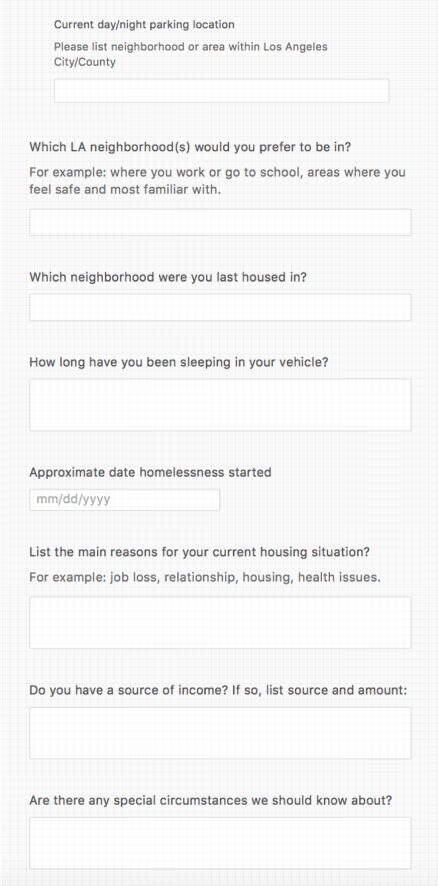 EXCERPT OF UI SPECIFICATIONS FOR SAFE PARKING LA APPLICATION